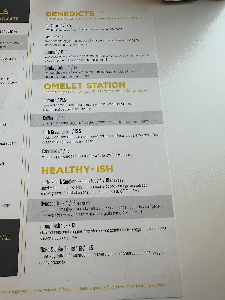 Start your day with the Knife & Fork Smoked Salmon Toast, featuring luscious eggs nestled atop smoked salmon, avocado, and a touch of orange marmalade on hearty 7 grain bread for just $19.00. For a lighter option, indulge in the Avocado Toast, layered with quinoa, goat cheese, and crispy bacon chips, all for $15.00.
