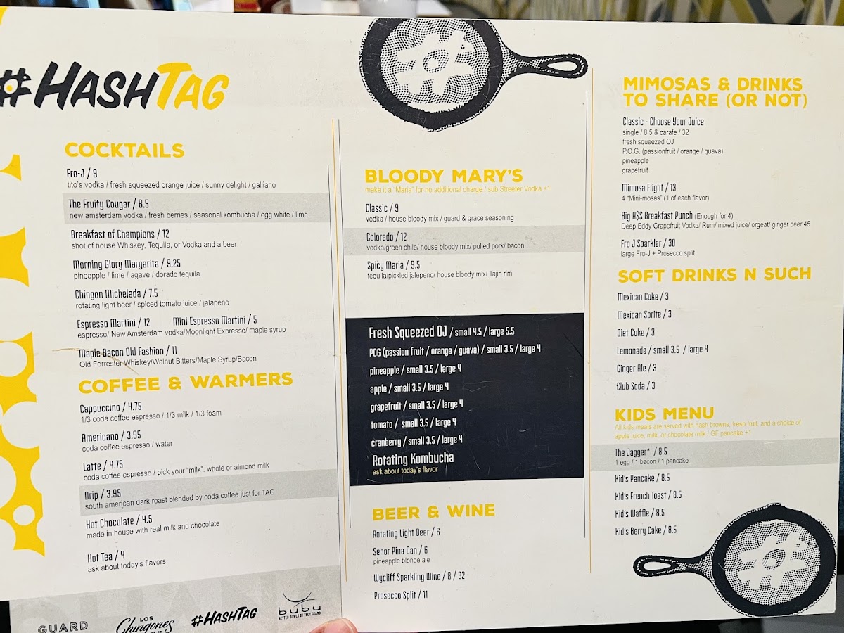 Don't miss the Hippy Hash, a colorful medley of veggies and sweet potatoes, making your brunch both hearty and healthy. And if you’re in the mood for drinks, their vibrant selection of mimosas and Bloody Marys are perfect companions to your meal.
